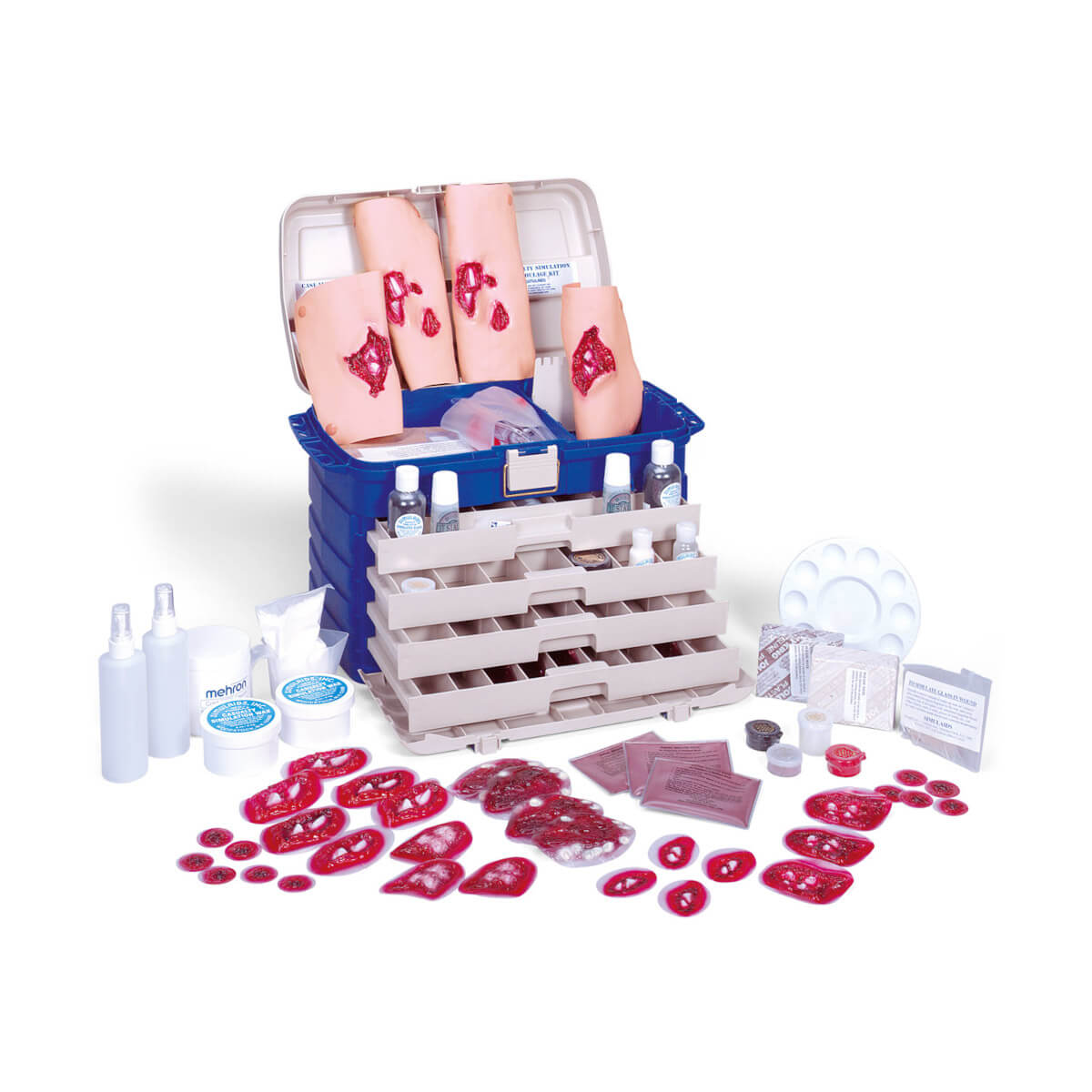 Zaawansowany zestaw do pozoracji ran służy do symulowania różnych rodzajów obrażeń – poparzeń, zranień, krwawienia, zanieczyszczonych ran, a także stanów pacjenta, np. wstrząs. Dzięki pojemnikom z tłoczkami można symulować strumień płynącej krwi.