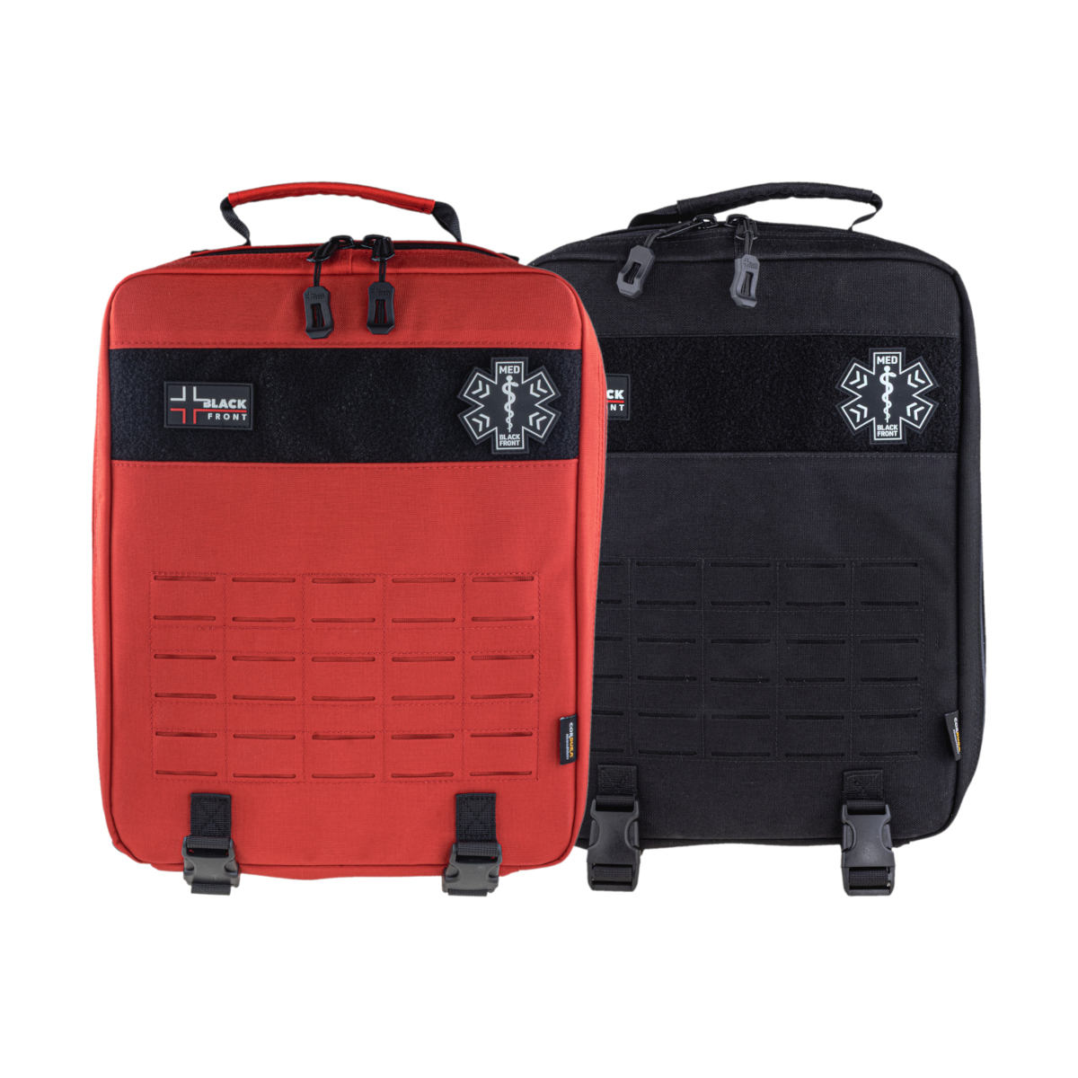 Plecak SBTR GEN2 jest elementem systemu Trauma Responder marki Black Front i może pracować samodzielnie lub w zestawie z: LBTR (duży plecak), TR (duża saszetka) oraz PTR (mała saszetka osobista). Montaż odbywa się w standardzie PALS/MOLLE z Laser Cut, co pozwala swobodnie skalować konfigurację.