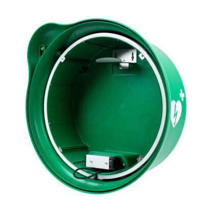 - Kompatybilność z każdym modelem AED – Cabinaid została zaprojektowana tak, aby pasowała do wszystkich dostępnych na rynku modeli defibrylatorów. Oferuje przestronną wnękę na urządzenie oraz akcesoria, zapewniając pełną funkcjonalność.
