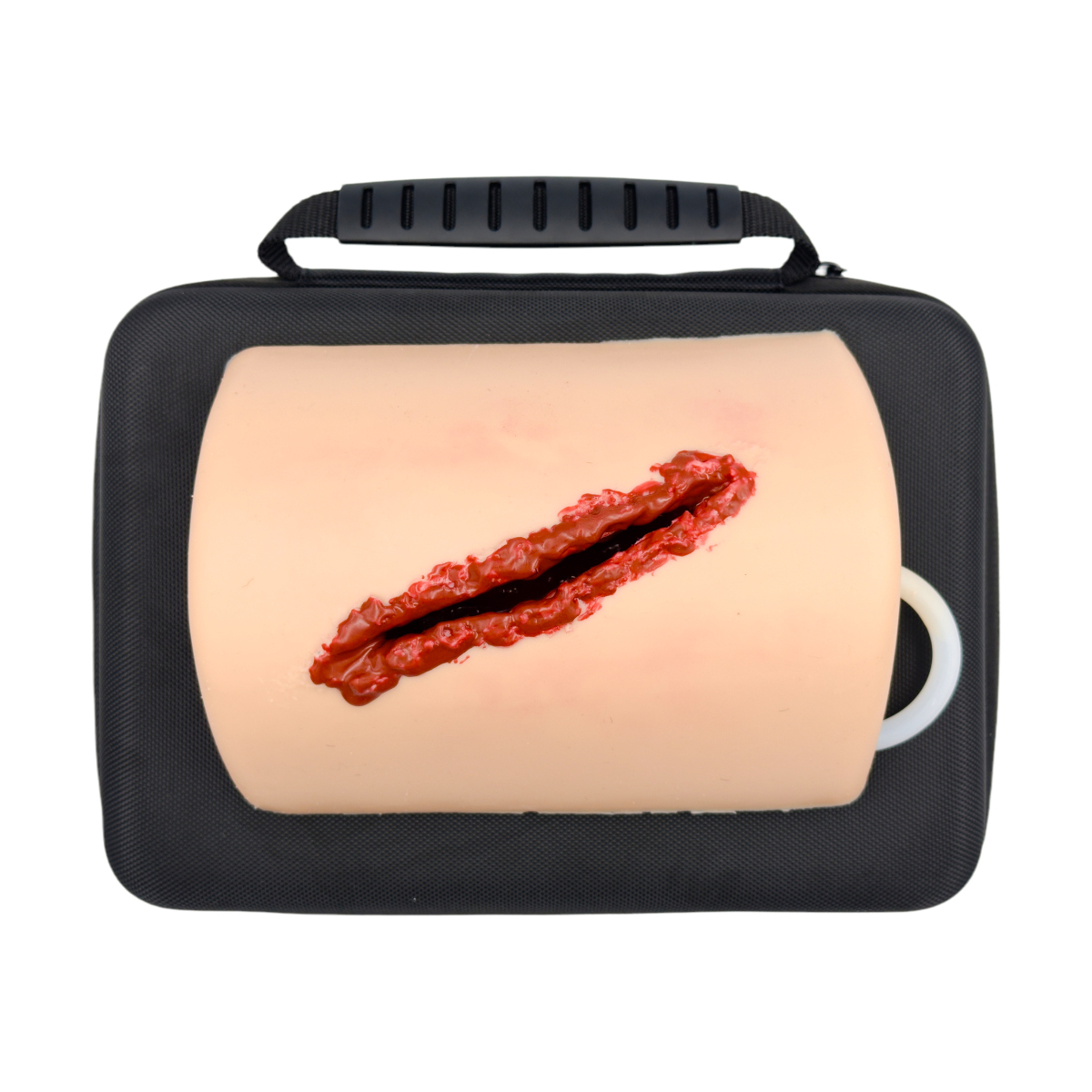 Realistyczny model rany ciętej uda został stworzony z myślą o praktycznych szkoleniach z tamowania krwotoków i opatrywania dużych ran ciętych. Trenażer umożliwia ćwiczenie technik pakowania ran w warunkach maksymalnie zbliżonych do rzeczywistych, dzięki realistycznej strukturze skóry, anatomicznie odwzorowanej ranie oraz funkcji regulowanego krwawienia.