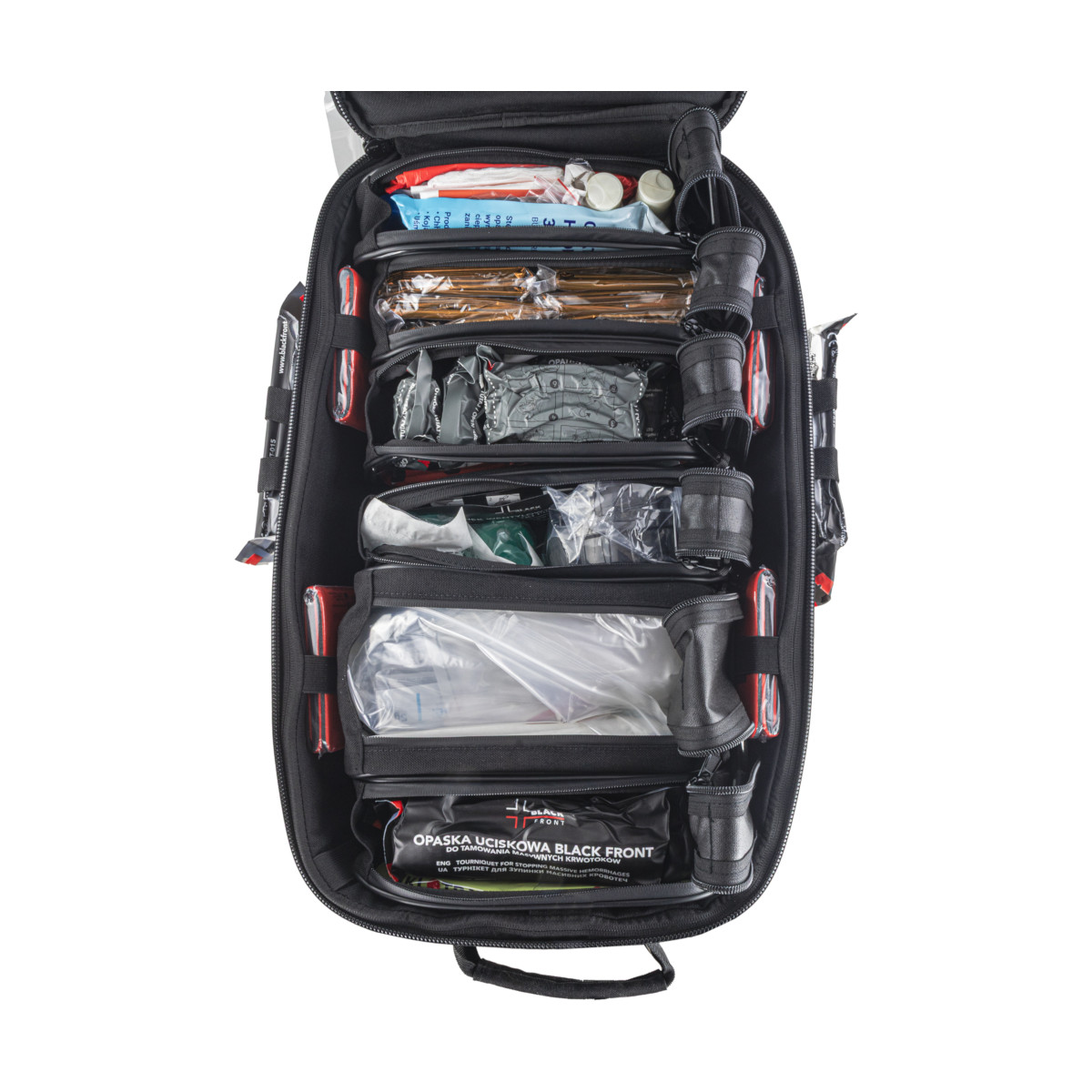 Zestaw ratowniczy INTERVENTION READY PLUS przeznaczony jest dla osób wyszkolonych w podstawach medycyny pola walki/działań w środowisku taktycznym. Wyposażenie rozplanowano tak, by usprawnić działanie ratownika zgodnie z protokołem MARCHE i umożliwić rozszerzoną pomoc na poziomie TFC – więcej niż jednemu poszkodowanemu. Atutami zestawu są: wysoka odporność na uszkodzenia mechaniczne, możliwość montażu dodatkowego sprzętu oraz ergonomiczny system nośny, który daje możliwość dostosowania plecaka do potrzeb ratownika. Zestaw stanowi bazę pod pełne działania medyczne – o szczegółowym doborze i ilości wyposażenia decyduje ratownik.