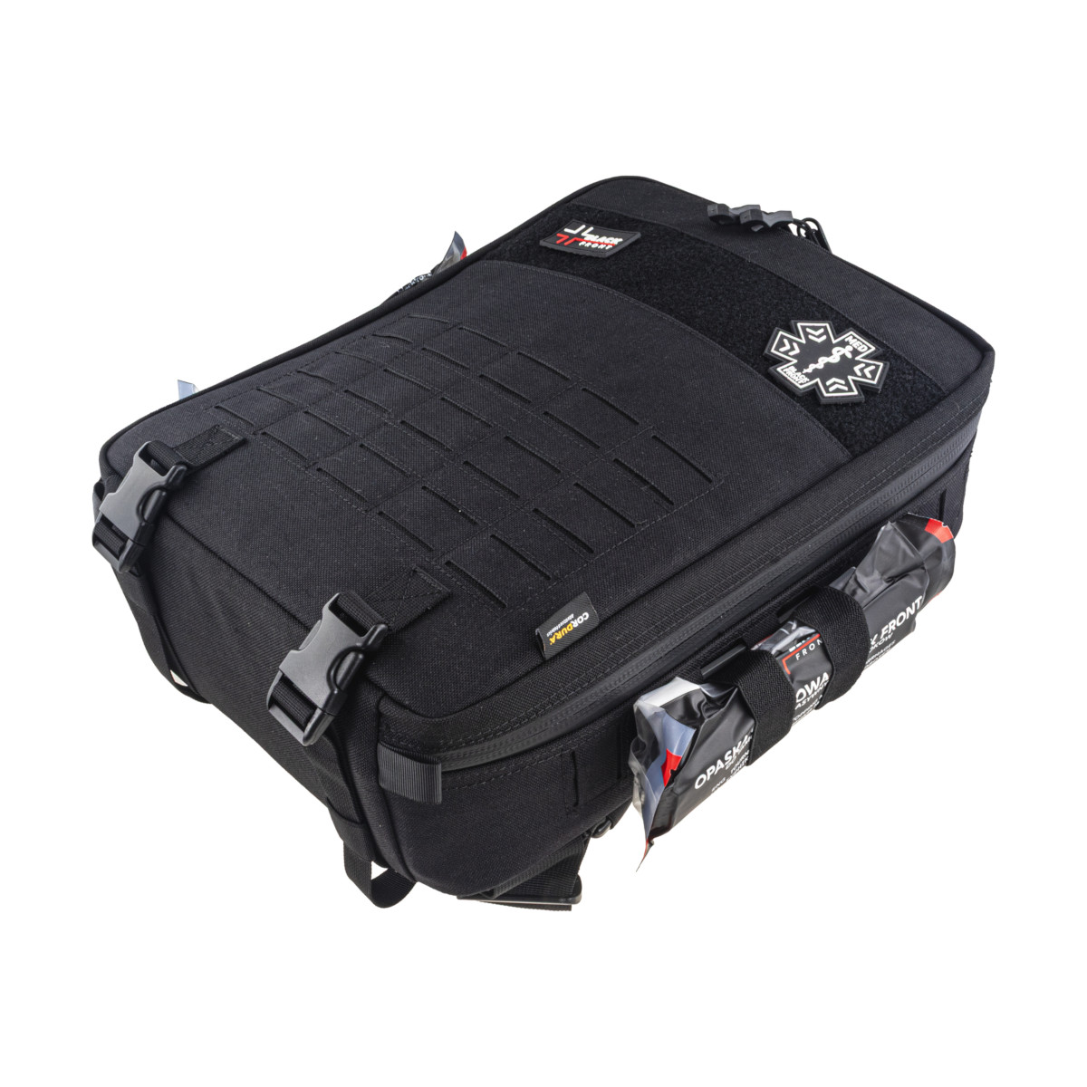 Plecak SBTR GEN2 to kompaktowa baza dla różnego rodzaju zestawów ratowniczych. Wykonany z oryginalnej tkaniny CORDURA®, łączy wysoką odporność z pełną modułowością. Zewnętrzny standard PALS/MOLLE (laser cut) ułatwia dopinanie dodatkowych modułów, a uporządkowane wnętrze – saszetki modułowe, zrywalny panel z linką shockcord oraz elastyczne taśmy – zapewnia szybki dostęp do kluczowego wyposażenia. Bryzgoszczelne zamki YKK, komponenty Duraflex i lekkie usztywnienia gwarantują niezawodność w terenie. Pojemność ok. 13,2 l (40 × 30 × 11 cm) sprawia, że SBTR GEN2 świetnie sprawdzi się zarówno w zestawach podstawowych, jak i w bardziej wyspecjalizowanych konfiguracjach.