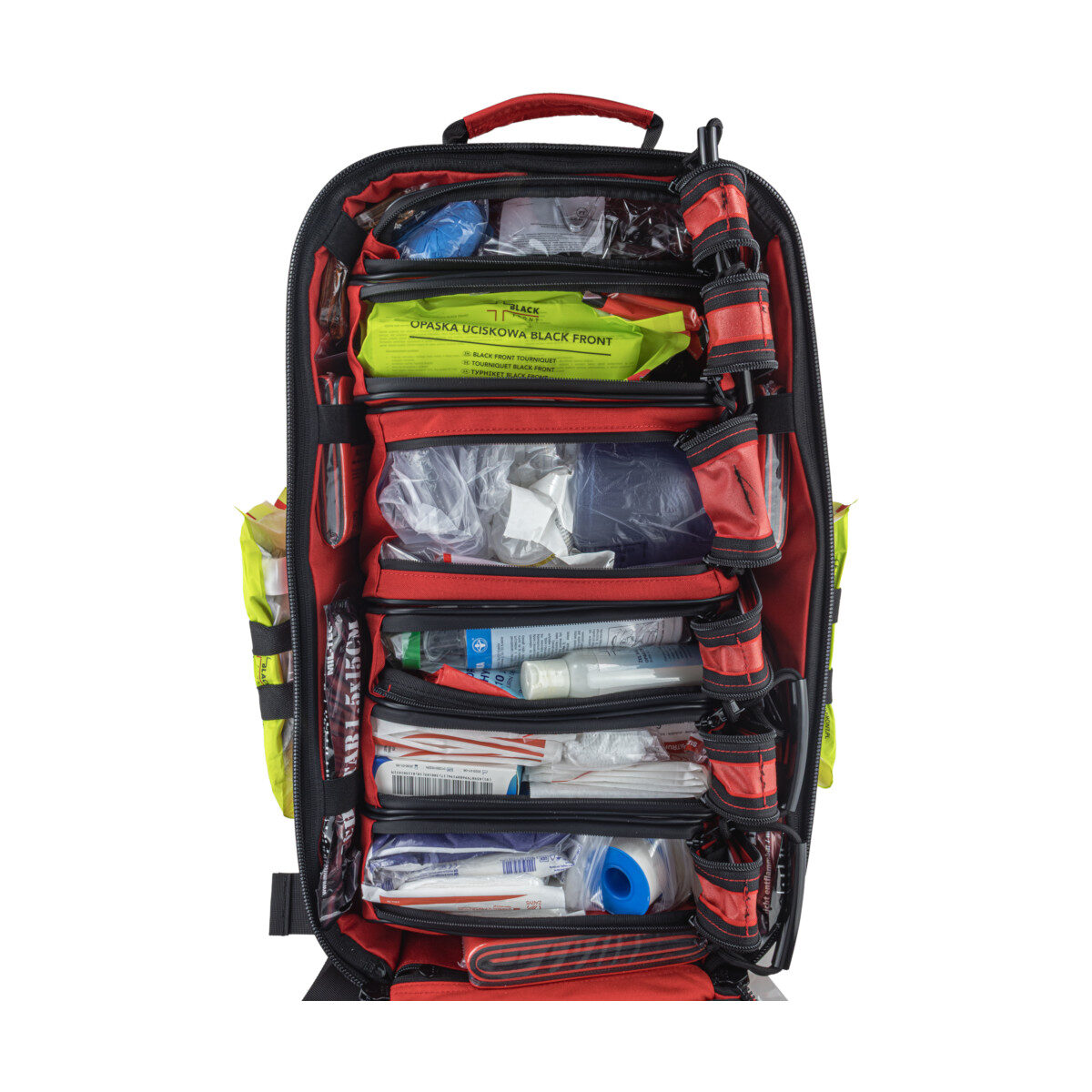 Zestaw ratowniczy RESCUE READY PLUS przeznaczony jest głównie dla ratowników KPP oraz jako baza dla zestawu dla ratowników medycznych. Świetnie sprawdzi się m.in. na zabezpieczeniach różnego typu imprez plenerowych. Mimo że jest blisko dwukrotnie większy od zestawu RESCUE READY, nadal pozostaje ergonomiczny i nie obciąża nadmiernie ratownika przy dłuższym marszu. Kluczowe atuty to ergonomiczny system nośny oraz możliwość troczenia dodatkowego wyposażenia (standard PALS/MOLLE, wykonany techniką laser cut), co daje możliwość rozbudowania zestawu. Konfigurację dobrano pod protokół CABC – szybkie tamowanie krwotoków, zabezpieczenie dróg oddechowych, wsparcie oddechu i krążenia. Oprócz sprzętu do zabezpieczenia priorytetów ratowniczych, zestaw zawiera zapas materiałów do opieki nad lżej poszkodowanymi i zaopatrywania drobnych urazów miejscowych. Zestaw można rozszerzać zgodnie z poziomem wyszkolenia i profilem działań.